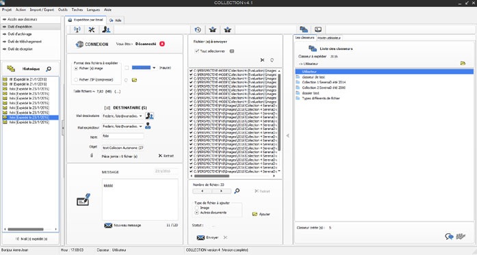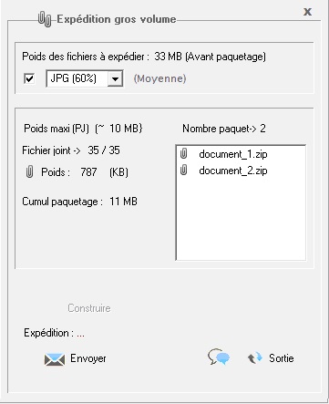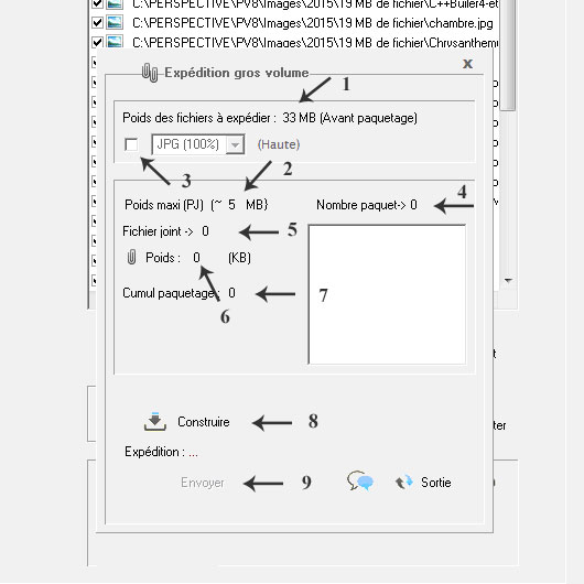 - Compression des images JPG de 30% à 100% (importation et Expédition).